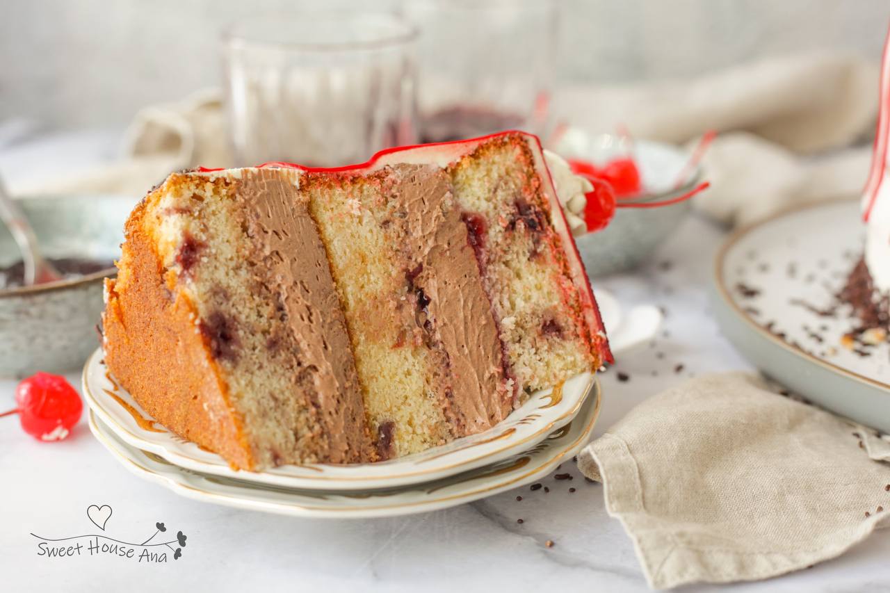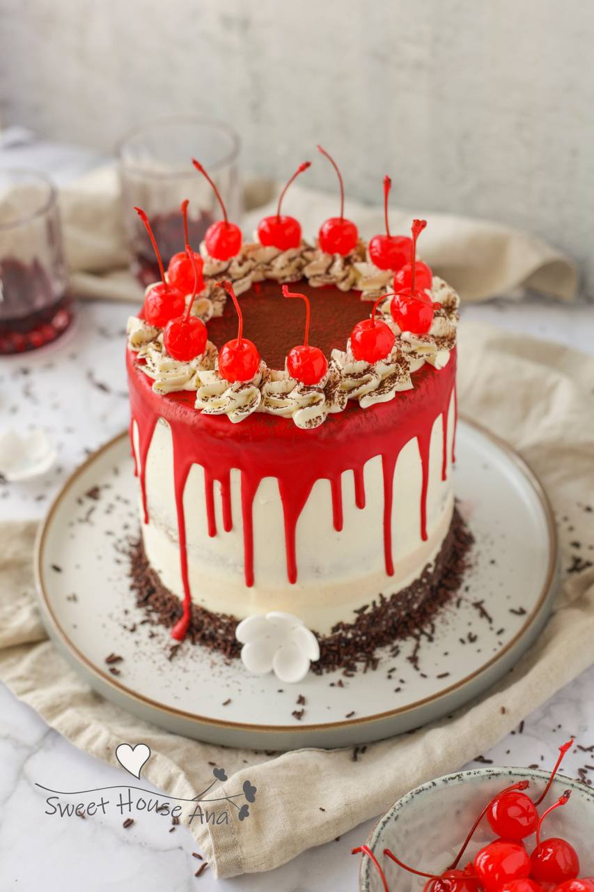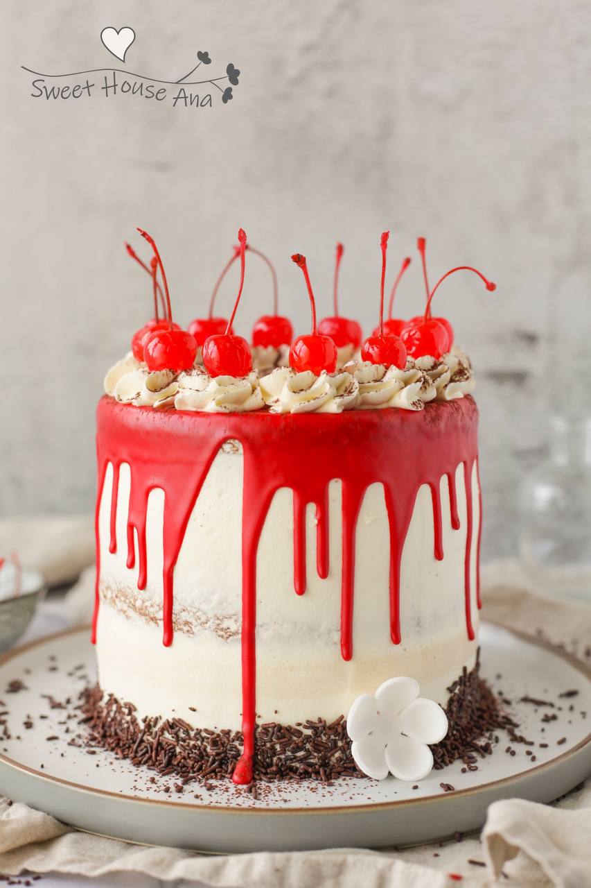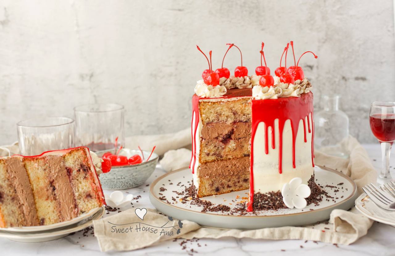 🪄Разкошен ванилов пандишпан с череши в съчетание с лек и пухкав крем от черен шоколад и ароматен черешов ликьор🍒🍫🎂