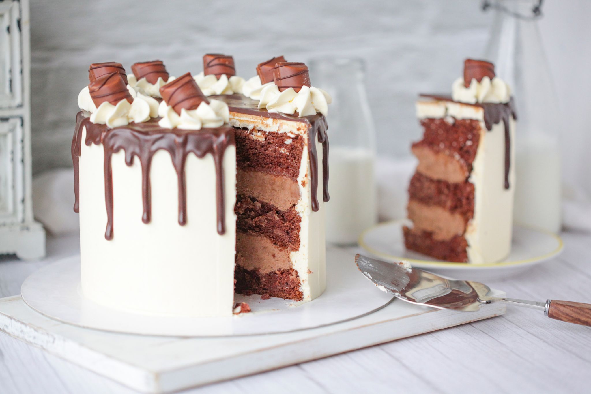 Сочни шоколадови блатове, между които които има Киндер Буено мус крем с парченца и Нутела. Завършена с маслен или сметанов крем и шоколадов дрип в края с любимите на всички Киндер Буено парченца. Торта, която да разтопи сетивата