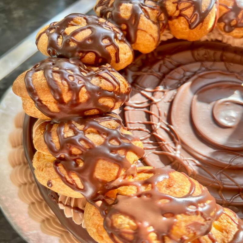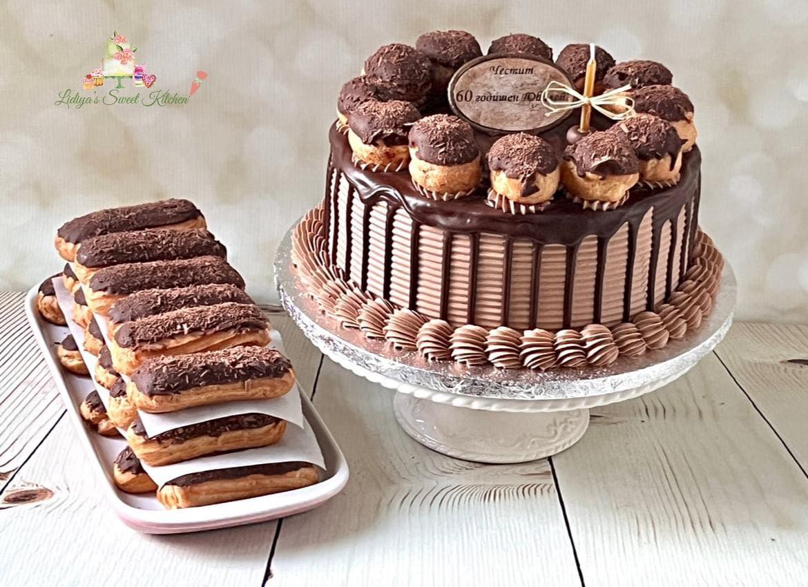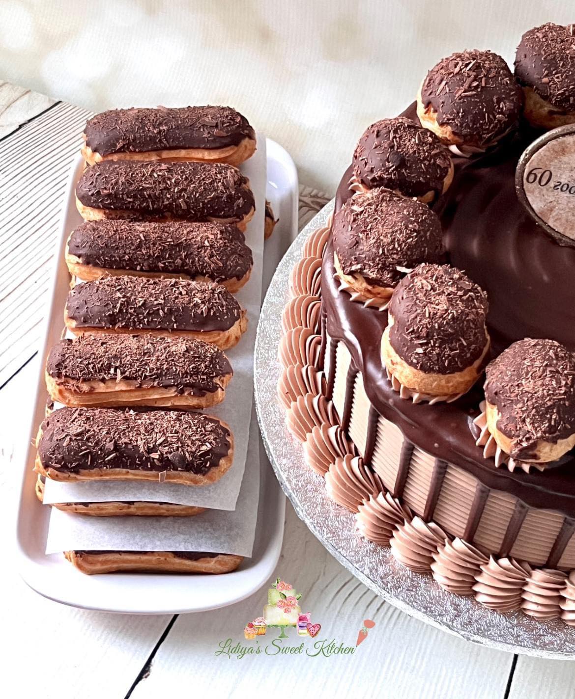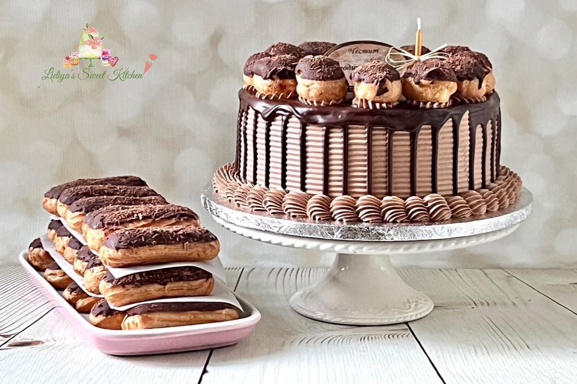Freshly baked eclairs, soft vanilla sponge layers, fluffy milk cream, and lots of chocolate!